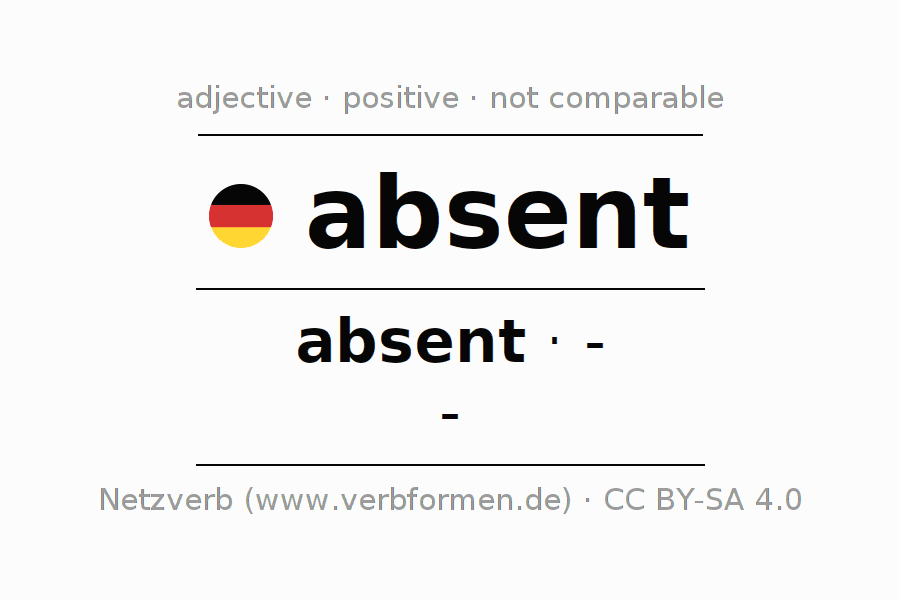 The declension of the adjective absent (absent, not present) uses the incomparable form absent. The adjective has no forms for the comparative and superlative. The adjective absent can be used both attributively in front of a noun as well as predicative in conjunction with a verb.One can not only inflect and compare absent, but all German adjectives. Comments ☆
