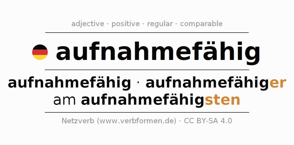 Declension and comparison German adjective aufnahmefähig