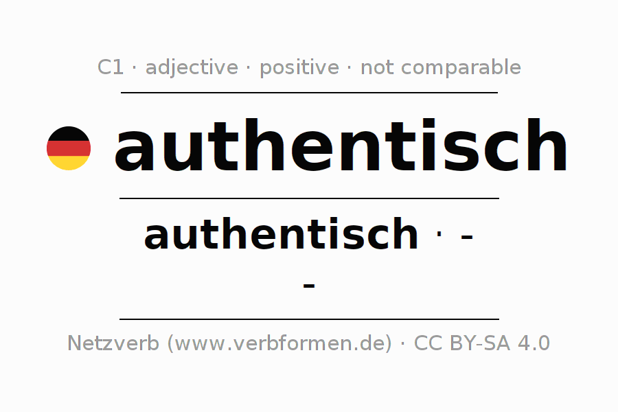 The declension of the adjective authentisch (authentic, genuine) uses the incomparable form authentisch. The adjective has no forms for the comparative and superlative. The adjective authentisch can be used both attributively in front of a noun as well as predicative in conjunction with a verb.One can not only inflect and compare authentisch, but all German adjectives. Comments ☆