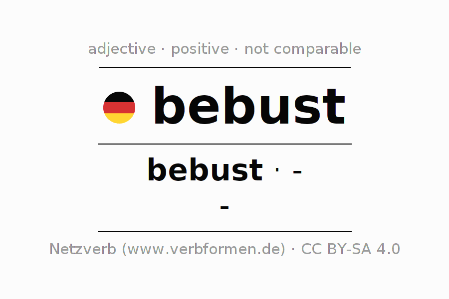 The declension of the adjective bebust (busty) uses the incomparable form bebust. The adjective has no forms for the comparative and superlative. The adjective bebust can be used both attributively in front of a noun as well as predicative in conjunction with a verb.One can not only inflect and compare bebust, but all German adjectives. Comments ☆