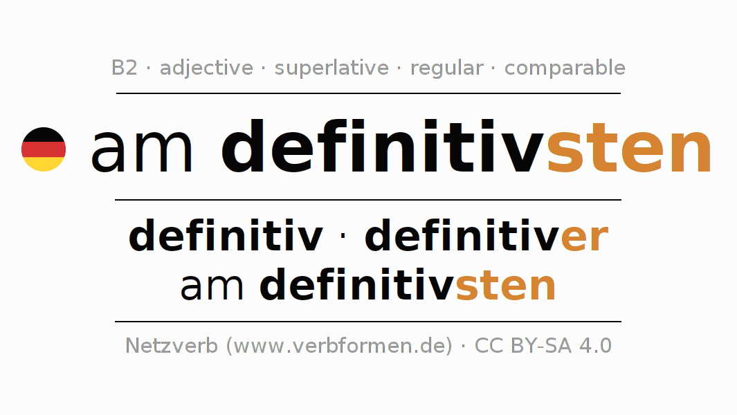 - Masculine: der definitivste, des definitivsten, dem definitivsten, den definitivsten
