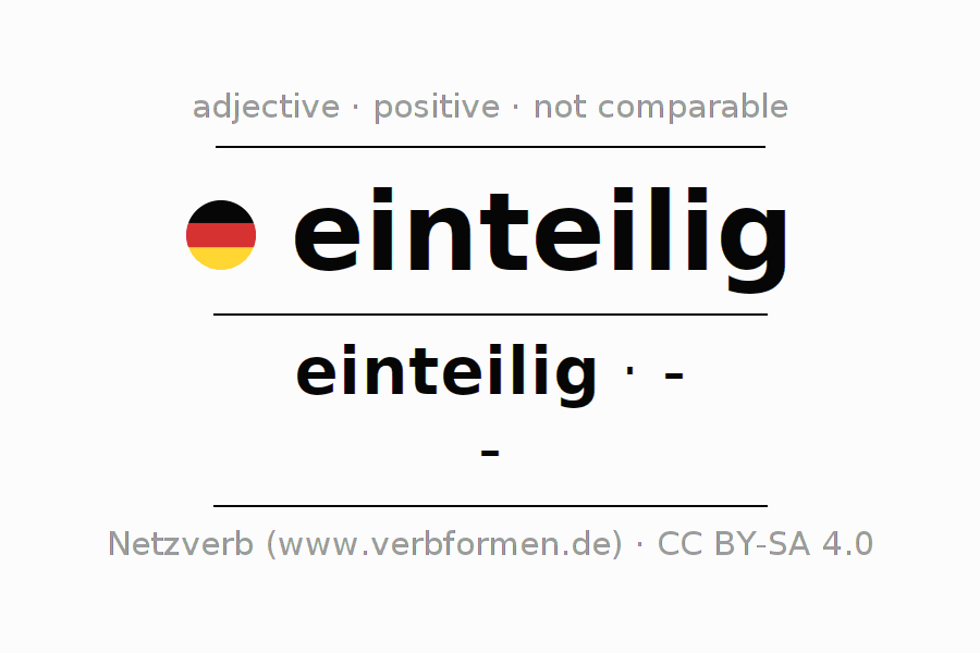 The declension of the adjective einteilig (one-piece, single-part) uses the incomparable form einteilig. The adjective has no forms for the comparative and superlative. The adjective einteilig can be used both attributively in front of a noun as well as predicative in conjunction with a verb.One can not only inflect and compare einteilig, but all German adjectives. Comments ☆