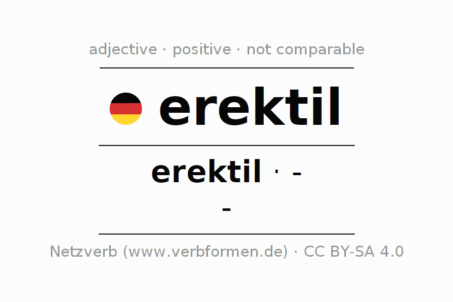 The declension of the adjective erektil (erectile) uses the incomparable form erektil. The adjective has no forms for the comparative and superlative. The adjective erektil can be used both attributively in front of a noun as well as predicative in conjunction with a verb.One can not only inflect and compare erektil, but all German adjectives. Comments ☆
