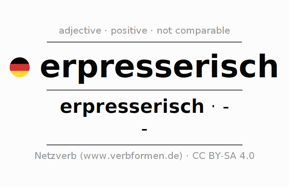 The declension and comparison of erpresserisch as declination and comparison tables with all strong, weak and mixed forms. These become clear as tables in the singular and plural and in all four cases nominative, genitive, dative and accusative.