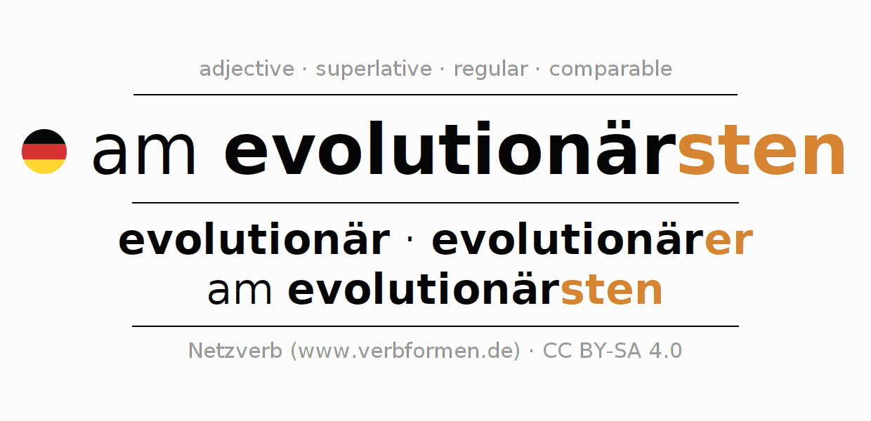 The declension and comparison of am evolutionärsten as declination and comparison tables with all strong, weak and mixed forms. These become clear as tables in the singular and plural and in all four cases nominative, genitive, dative and accusative.