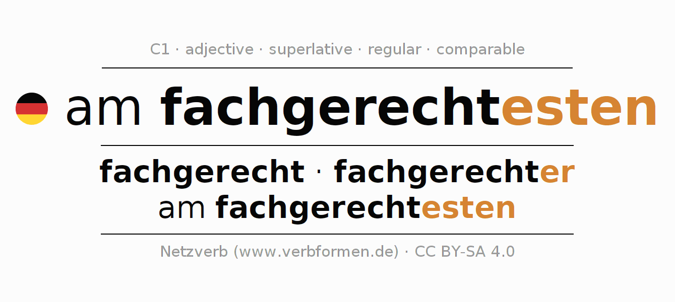 - Masculine: fachgerechtester, fachgerechtesten, fachgerechtestem, fachgerechtesten