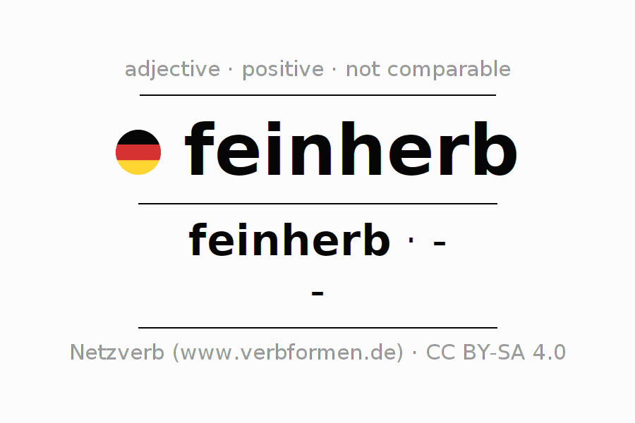 The declension of the adjective feinherb (off-dry, semi-dry) uses the incomparable form feinherb. The adjective has no forms for the comparative and superlative. The adjective feinherb can be used both attributively in front of a noun as well as predicative in conjunction with a verb.One can not only inflect and compare feinherb, but all German adjectives. Comments ☆