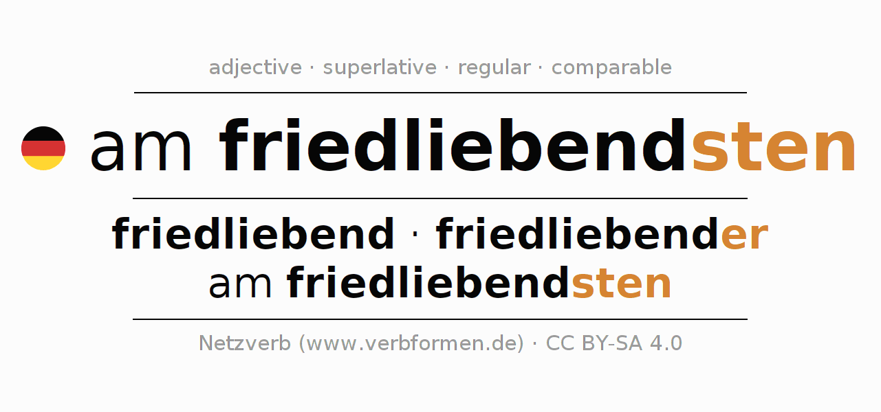 - Masculine: friedliebendster, friedliebendsten, friedliebendstem, friedliebendsten