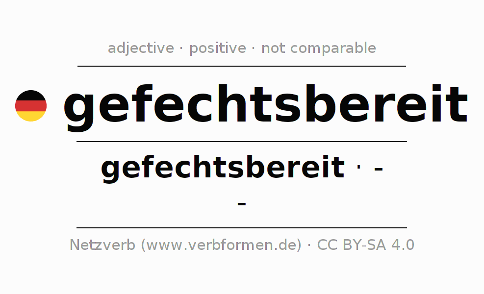 The declension of the adjective gefechtsbereit (combat-ready, ready for battle) uses the incomparable form gefechtsbereit. The adjective has no forms for the comparative and superlative. The adjective gefechtsbereit can be used both attributively in front of a noun as well as predicative in conjunction with a verb.One can not only inflect and compare gefechtsbereit, but all German adjectives. Comments ☆