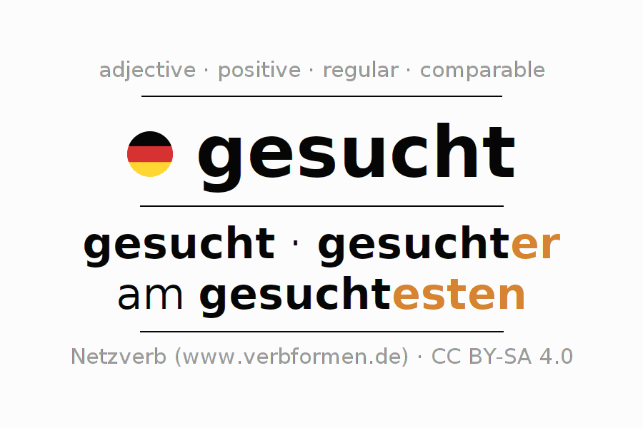 The declension and comparison of gesucht as declination and comparison tables with all strong, weak and mixed forms. These become clear as tables in the singular and plural and in all four cases nominative, genitive, dative and accusative.