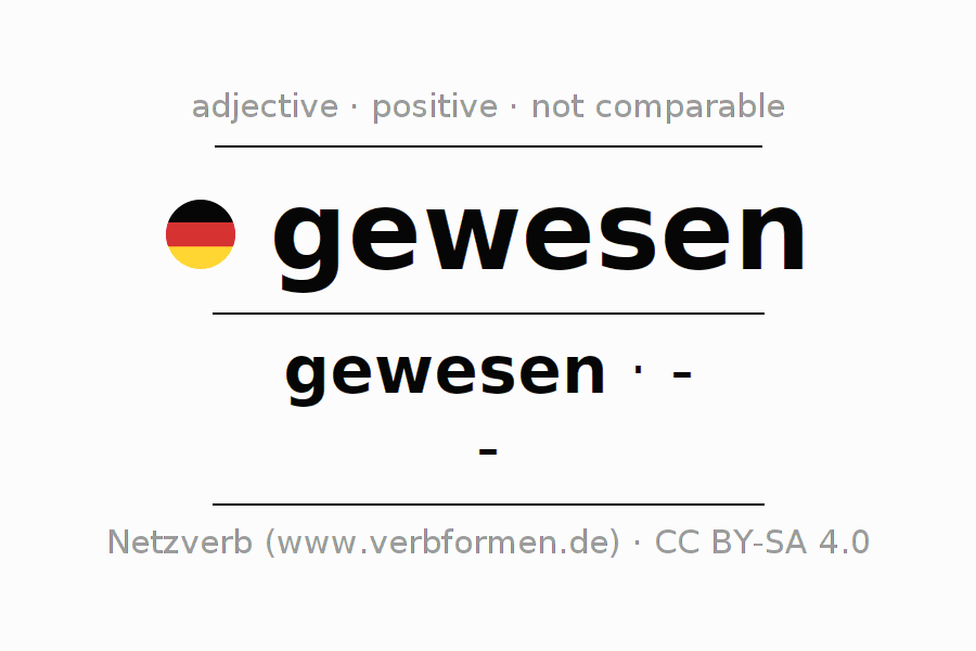 The declension of the adjective gewesen (been, belonging to the past) uses the incomparable form gewesen. The adjective has no forms for the comparative and superlative. The adjective gewesen can be used both attributively in front of a noun as well as predicative in conjunction with a verb.One can not only inflect and compare gewesen, but all German adjectives. Comments ☆