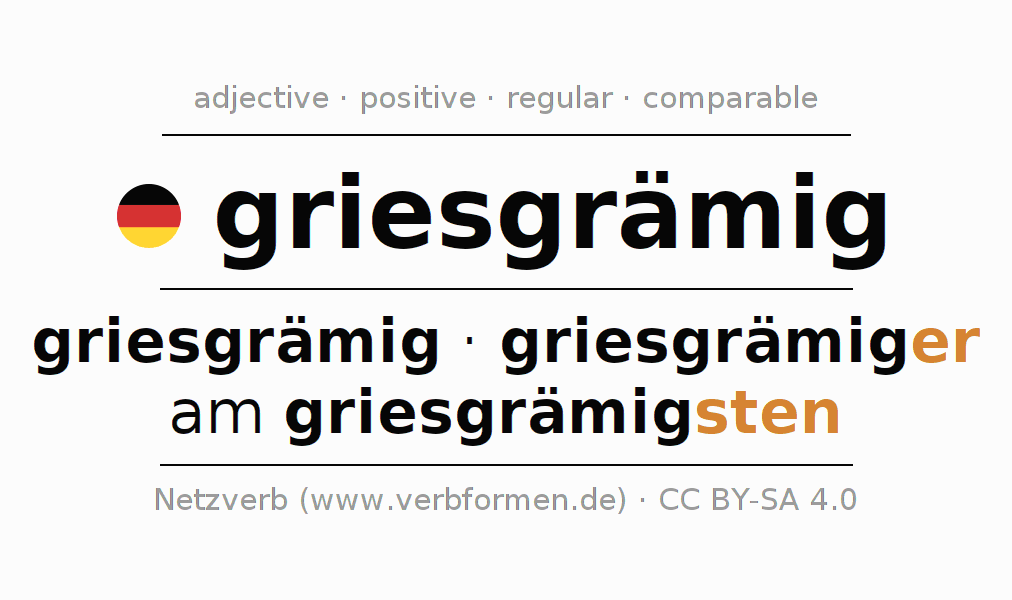 Declension and comparison German adjective griesgrämig