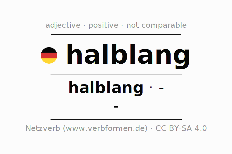 The declension of the adjective halblang (medium-length, mid-length) uses the incomparable form halblang. The adjective has no forms for the comparative and superlative. The adjective halblang can be used both attributively in front of a noun as well as predicative in conjunction with a verb.One can not only inflect and compare halblang, but all German adjectives. Comments ☆