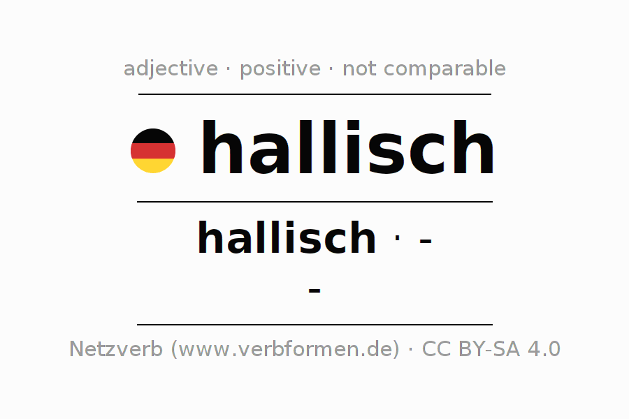 The declension of the adjective hallisch (of Halle, Halle-related) uses the incomparable form hallisch. The adjective has no forms for the comparative and superlative. The adjective hallisch can be used both attributively in front of a noun as well as predicative in conjunction with a verb.One can not only inflect and compare hallisch, but all German adjectives. Comments ☆
