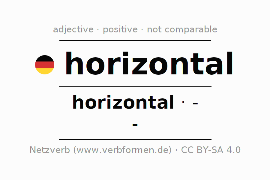The declension of the adjective horizontal (horizontal) uses the incomparable form horizontal. The adjective has no forms for the comparative and superlative. The adjective horizontal can be used both attributively in front of a noun as well as predicative in conjunction with a verb.One can not only inflect and compare horizontal, but all German adjectives. Comments ☆