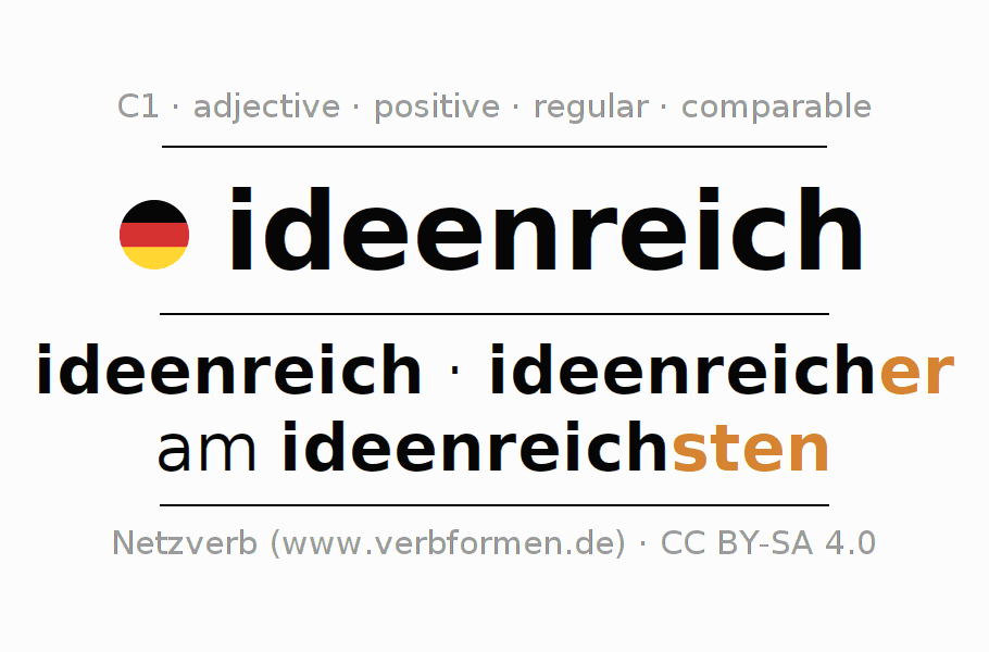 Declension and comparison forms of ideenreich