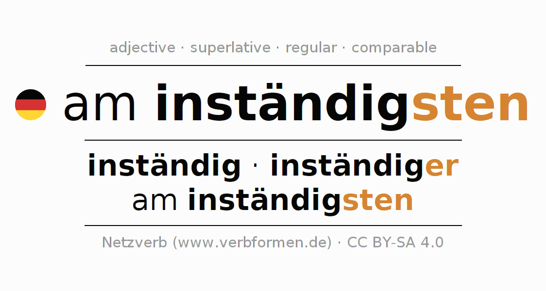 Declension and comparison German adjective am inständigsten