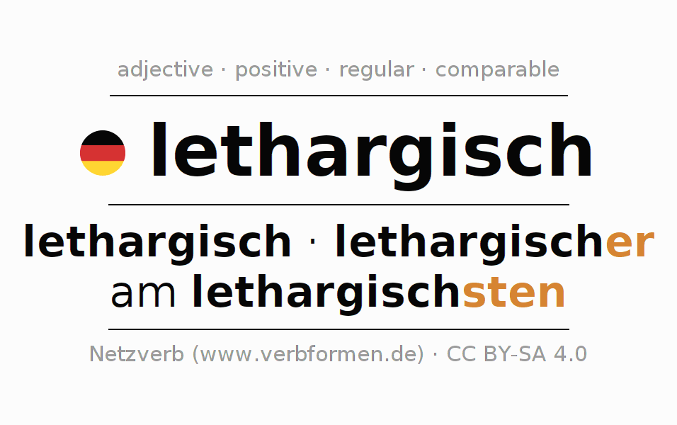 The declension and comparison of lethargisch as declination and comparison tables with all strong, weak and mixed forms. These become clear as tables in the singular and plural and in all four cases nominative, genitive, dative and accusative.