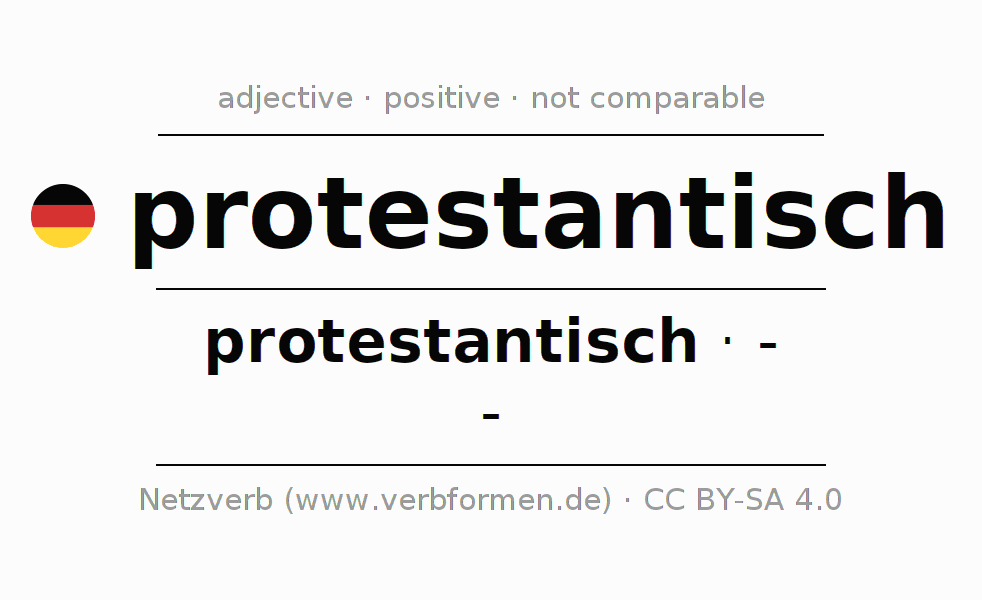 The declension of the adjective protestantisch (Protestant, protestant) uses the incomparable form protestantisch. The adjective has no forms for the comparative and superlative. The adjective protestantisch can be used both attributively in front of a noun as well as predicative in conjunction with a verb.One can not only inflect and compare protestantisch, but all German adjectives. Comments ☆