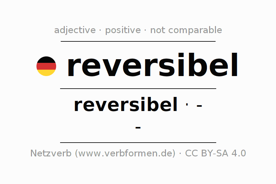The declension of the adjective reversibel (reversible) uses the incomparable form reversibel. The adjective has no forms for the comparative and superlative. The adjective reversibel can be used both attributively in front of a noun as well as predicative in conjunction with a verb.One can not only inflect and compare reversibel, but all German adjectives. Comments ☆
