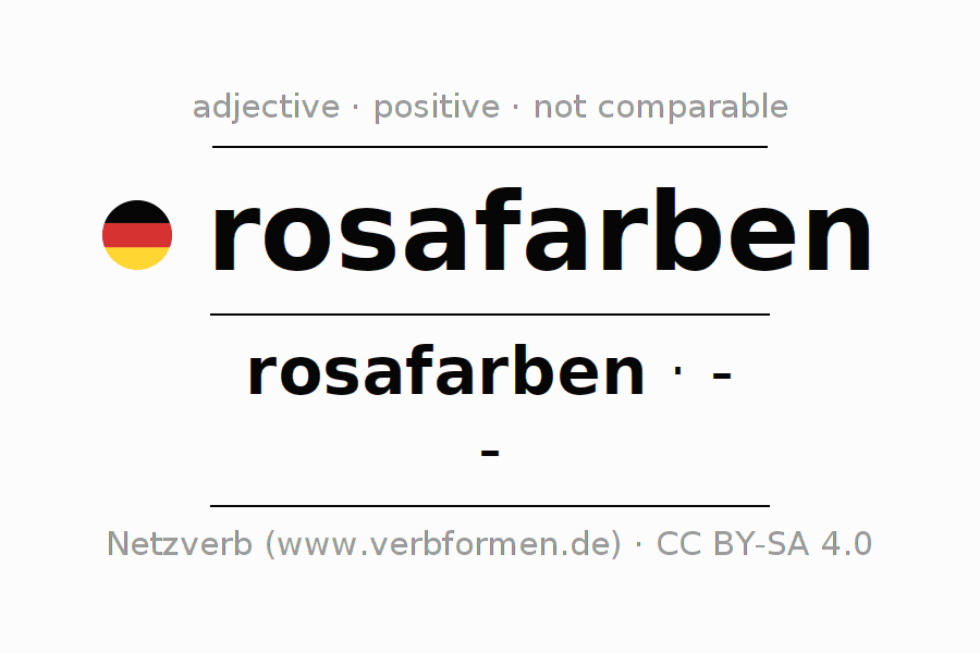 The declension of the adjective rosafarben (pink, rose-colored) uses the incomparable form rosafarben. The adjective has no forms for the comparative and superlative. The adjective rosafarben can be used both attributively in front of a noun as well as predicative in conjunction with a verb.One can not only inflect and compare rosafarben, but all German adjectives. Comments ☆