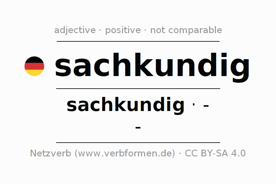 The declension of the adjective sachkundig (expert, knowledgeable) uses the incomparable form sachkundig. The adjective has no forms for the comparative and superlative. The adjective sachkundig can be used both attributively in front of a noun as well as predicative in conjunction with a verb.One can not only inflect and compare sachkundig, but all German adjectives. Comments ☆