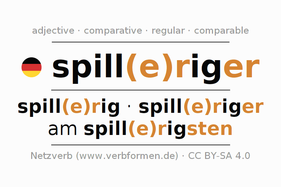 - Masculine: der spill(e)rigere, des spill(e)rigeren, dem spill(e)rigeren, den spill(e)rigeren