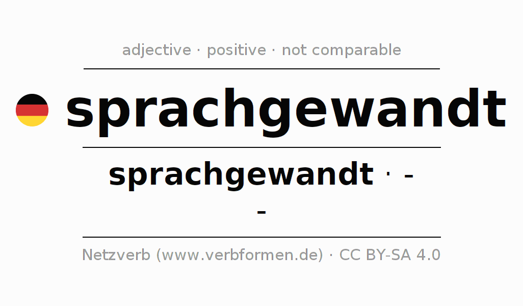 The declension of the adjective sprachgewandt (eloquent, articulate) uses the incomparable form sprachgewandt. The adjective has no forms for the comparative and superlative. The adjective sprachgewandt can be used both attributively in front of a noun as well as predicative in conjunction with a verb.One can not only inflect and compare sprachgewandt, but all German adjectives. Comments ☆
