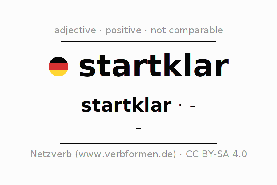 The declension of the adjective startklar (prepared, ready) uses the incomparable form startklar. The adjective has no forms for the comparative and superlative. The adjective startklar can be used both attributively in front of a noun as well as predicative in conjunction with a verb.One can not only inflect and compare startklar, but all German adjectives. Comments ☆