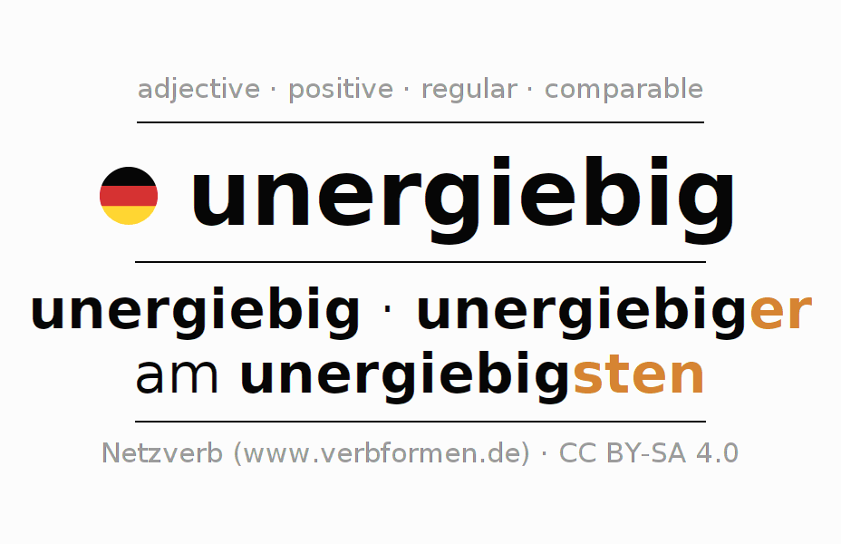 The declension of the adjective unergiebig (unproductive, unprofitable) uses these forms of the comparison unergiebig,unergiebiger,am unergiebigsten. The endings for the comparison in the comparative and superlative are er/sten. The adjective unergiebig can be used both attributively in front of a noun as well as predicative in conjunction with a verb.One can not only inflect and compare unergiebig, but all German adjectives. Comments ☆