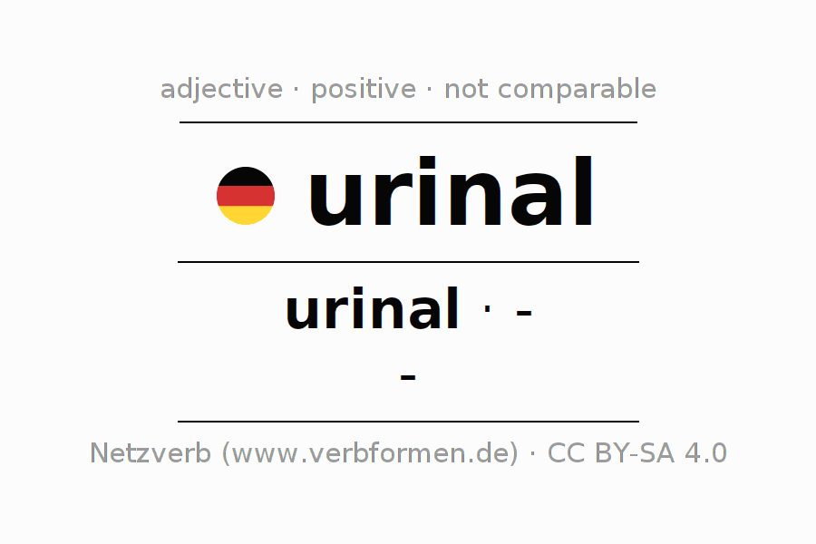 The declension of the adjective urinal (urinary, urinal) uses the incomparable form urinal. The adjective has no forms for the comparative and superlative. The adjective urinal can be used both attributively in front of a noun as well as predicative in conjunction with a verb.One can not only inflect and compare urinal, but all German adjectives. Comments ☆