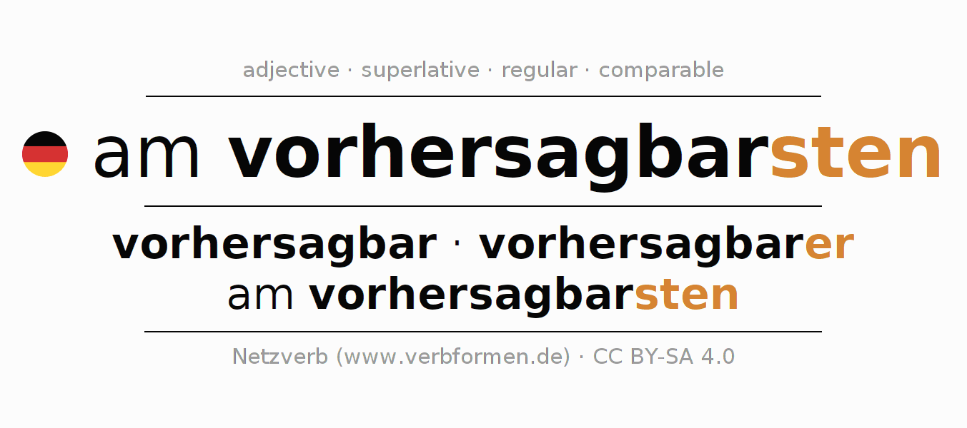 - Feminine: vorhersagbarste, vorhersagbarster, vorhersagbarster, vorhersagbarste