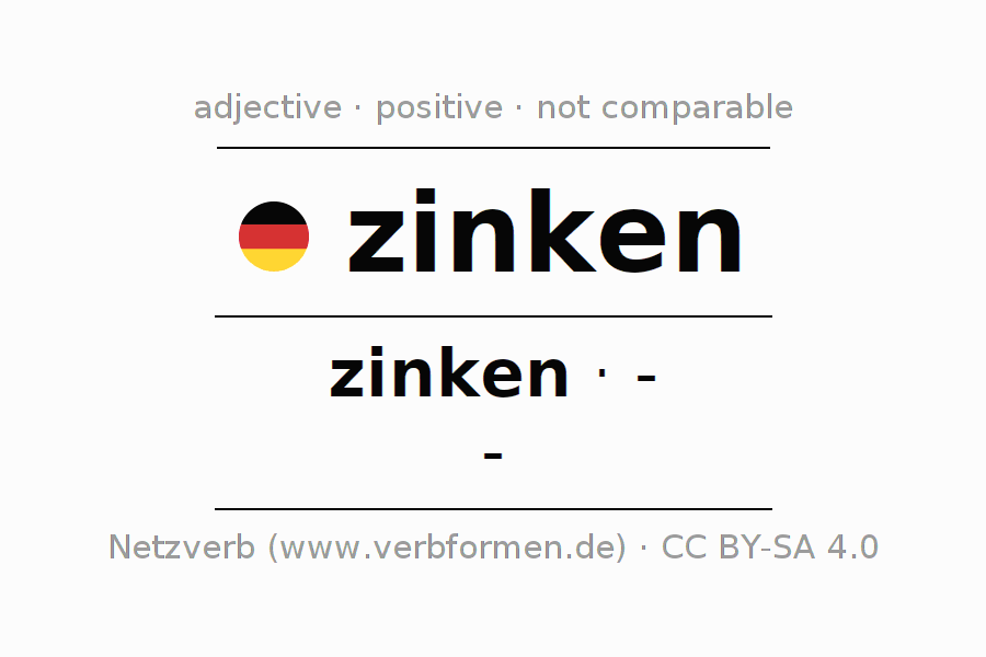 The declension of the adjective zinken (zinc) uses the incomparable form zinken. The adjective has no forms for the comparative and superlative. The adjective zinken can be used both attributively in front of a noun as well as predicative in conjunction with a verb.One can not only inflect and compare zinken, but all German adjectives. Comments ☆