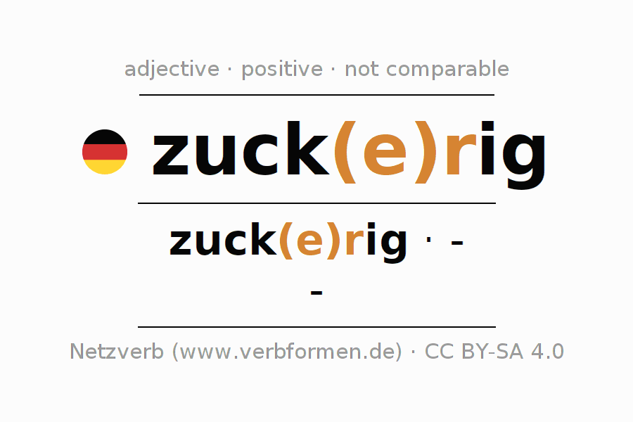 - Feminine: zuck(e)rige, zuck(e)riger, zuck(e)riger, zuck(e)rige