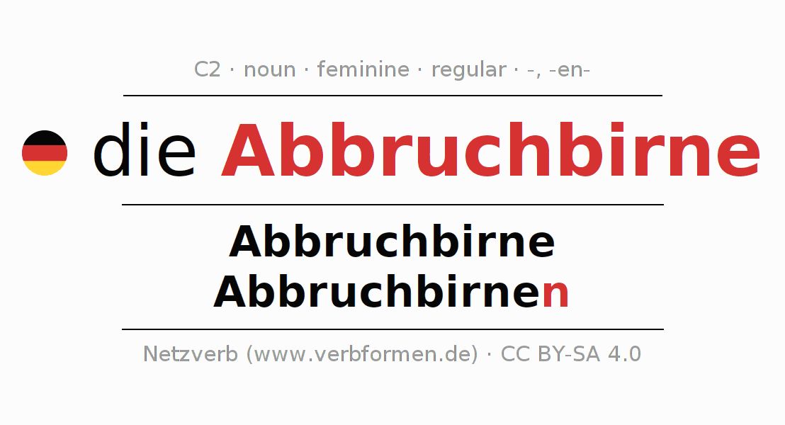 | Acc. | die Abbruchbirne | die Abbruchbirnen |
