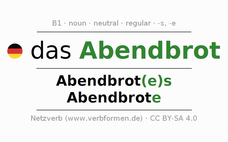 | Nom. | das Abendbrot | die Abendbrote |