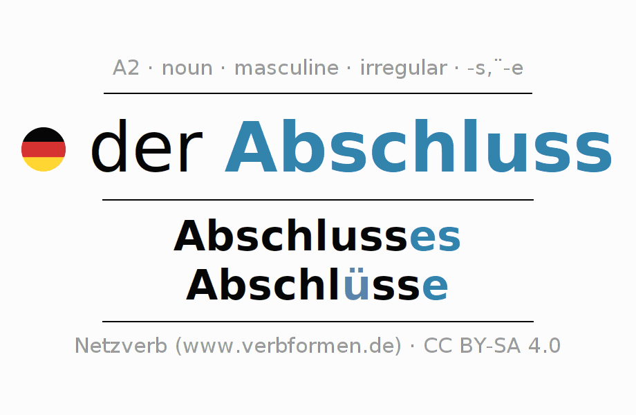 - Plural: die Abschlüsse, der Abschlüsse, den Abschlüssen, die Abschlüsse