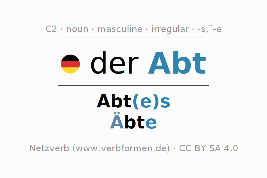 - Singular: der Abt, des Abt(e)s, dem Abt(e), den Abt
