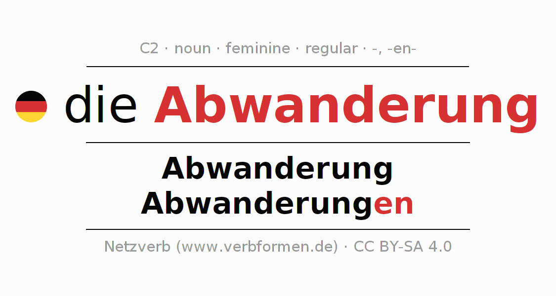- Singular: die Abwanderung, der Abwanderung, der Abwanderung, die Abwanderung
