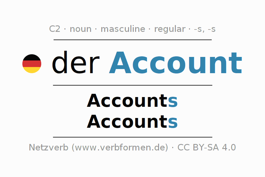 - Plural: die Accounts, der Accounts, den Accounts, die Accounts