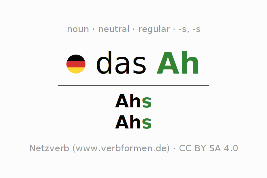 - Singular: das Ah, des Ahs, dem Ah, das Ah