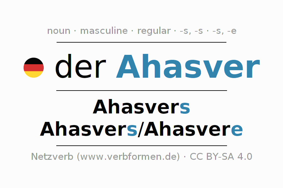 - Singular: der Ahasver, des Ahasvers, dem Ahasver, den Ahasver