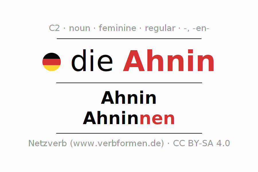 - Singular: die Ahnin, der Ahnin, der Ahnin, die Ahnin