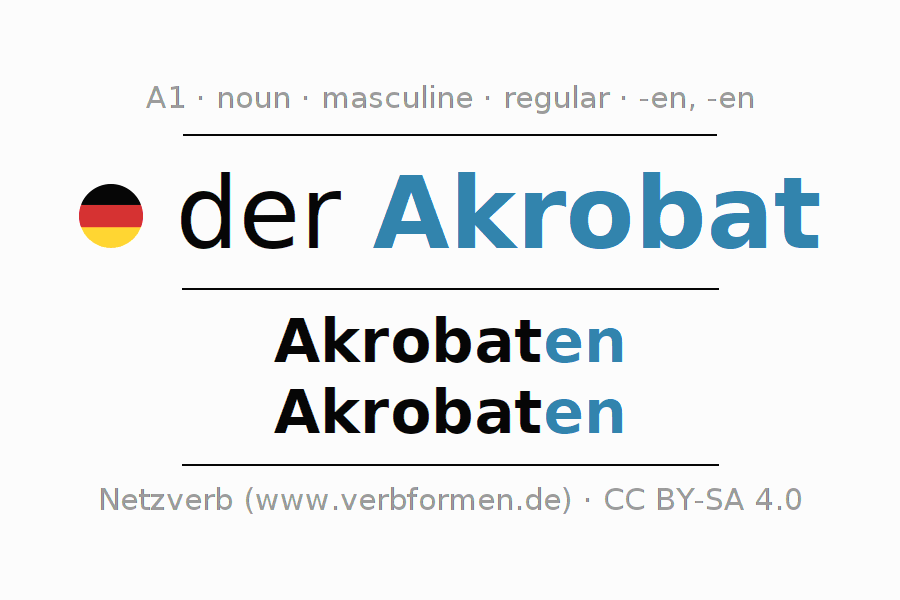 - Plural: die Akrobaten, der Akrobaten, den Akrobaten, die Akrobaten