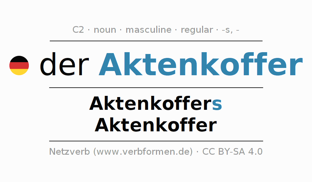 - Singular: der Aktenkoffer, des Aktenkoffers, dem Aktenkoffer, den Aktenkoffer