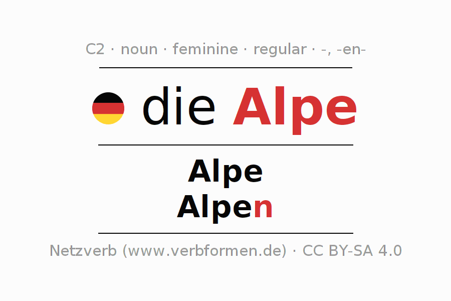 - Singular: die Alpe, der Alpe, der Alpe, die Alpe
