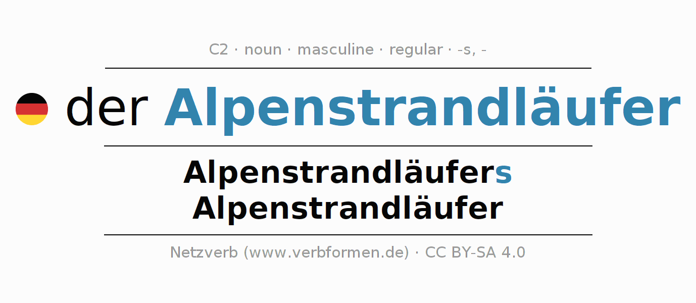 - Singular: der Alpenstrandläufer, des Alpenstrandläufers, dem Alpenstrandläufer, den Alpenstrandläufer