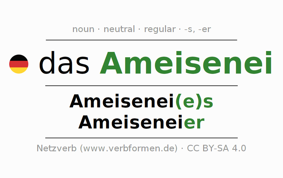 - Plural: die Ameiseneier, der Ameiseneier, den Ameiseneiern, die Ameiseneier
