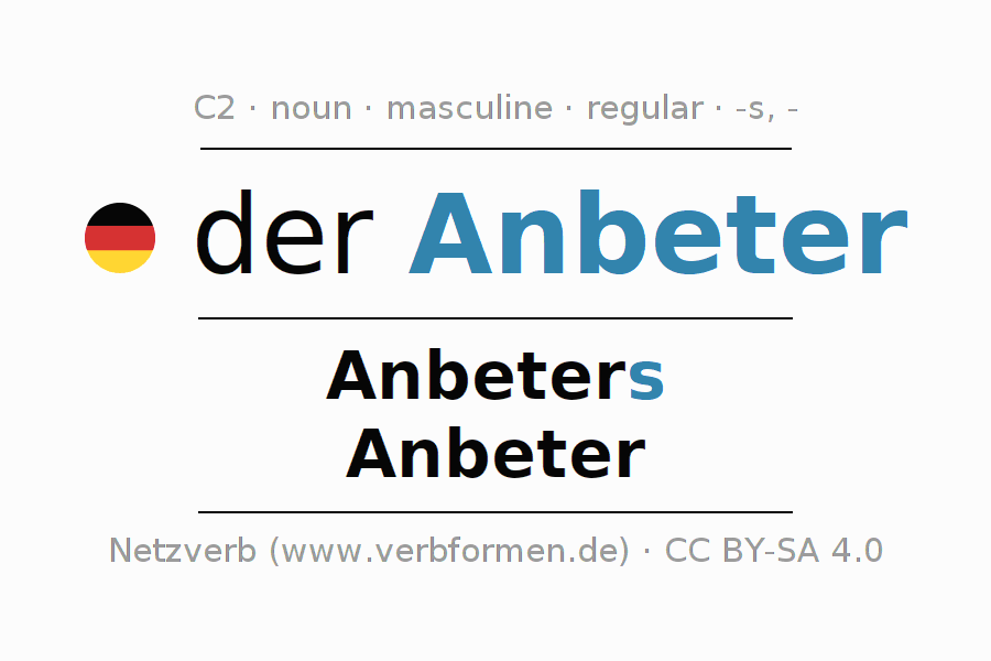 - Plural: die Anbeter, der Anbeter, den Anbetern, die Anbeter