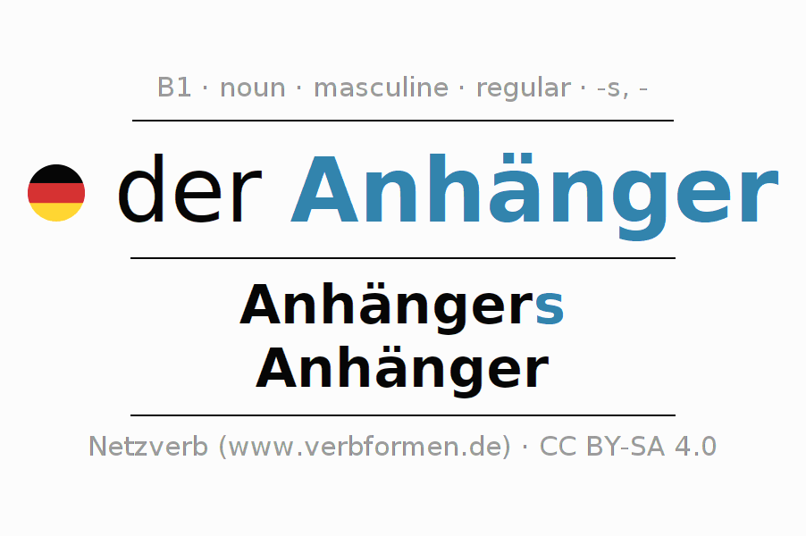 - Plural: die Anhänger, der Anhänger, den Anhängern, die Anhänger